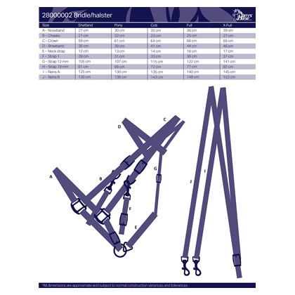 Reguleeritav PP materjalist valjaste ja päitsete kombinatsioon, millel on mustast domy-seemisnahast pehmendus ja nikeldatud metallosad. Komplektis on ka ratsmed, mis on varustatud praktiliste karabiinidega.